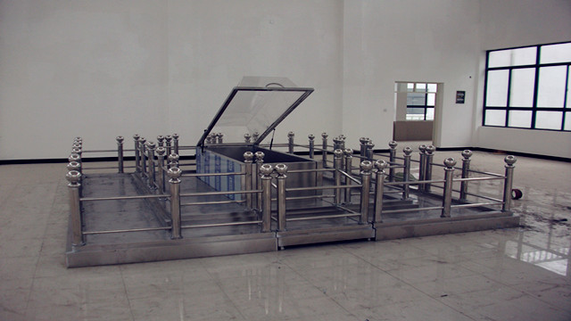 優(yōu)質不銹鋼雙層圍欄,內(nèi)設不銹鋼平臺,綠色草坪,特制液壓升降式透明高罩